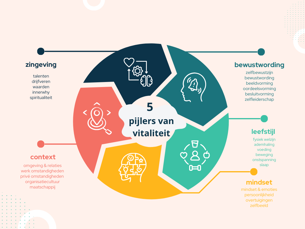 De 5 pijlers van vitaliteit vormen de basis voor al onze trajecten.