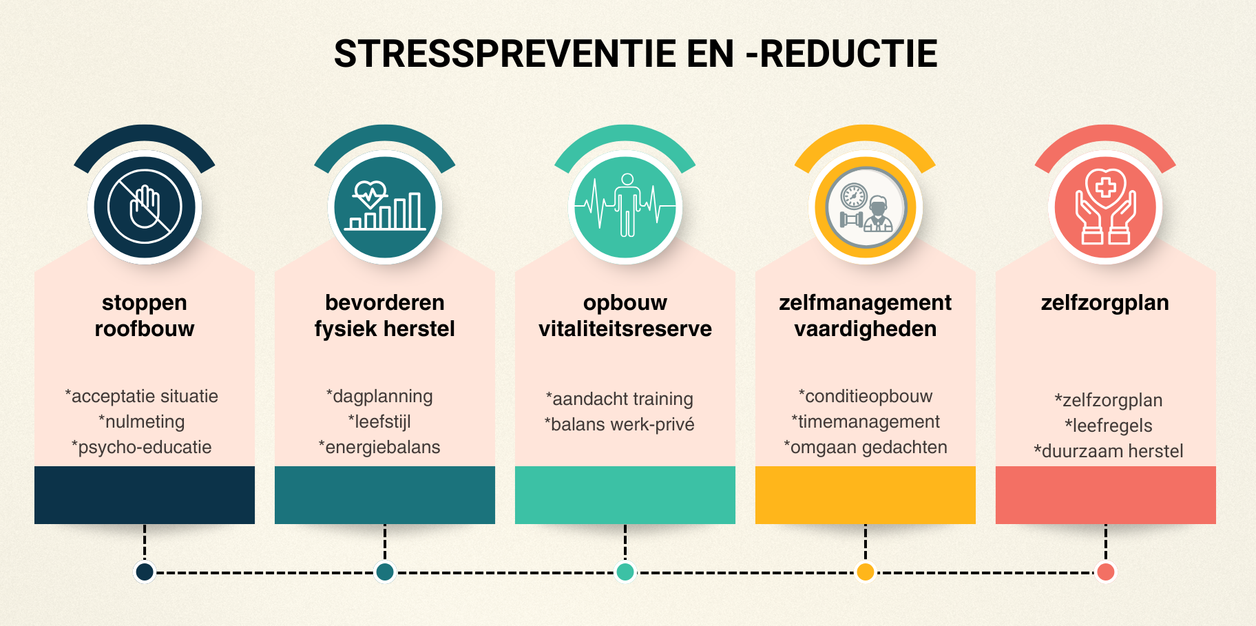 Een stresscoachingstraject kan uit de volgende onderdelen bestaan: